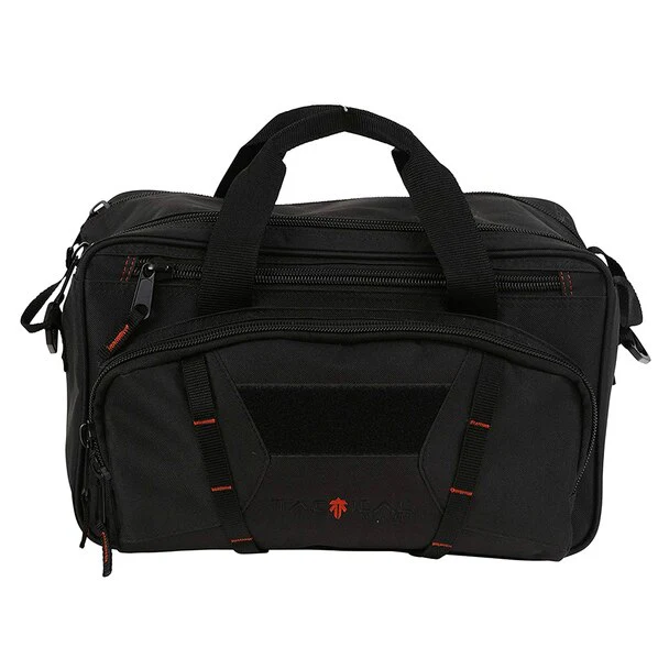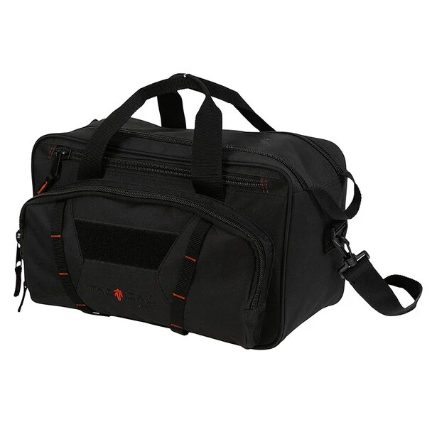 The Tactical Sporter Range Bag by Allen was designed for the serious shooter. Constructed of rugged Endura black fabric with red stitching and accents that will withstand whatever you can throw in it. The large zippered center pocket houses an internal flap pocket for segmented storage. The exterior pocket contains four magazine slots and comes standard with two exterior zippered sleeve pockets. Comes with a detachable shoulder strap so you can free up your hands or grab the two handles and go.