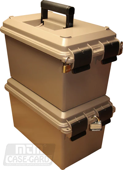Always ready for quick transport, Tactical Mag Cans offer a protected method of storage for loaded magazines. Each mag is individually secured with ridged precut foam padding to prevent bumping, sliding and scratching. Each box shuts tight with an O-ring seal and solid latching system. Dual latches give better sealing and prevent accidental openings. Security tabbed for three padlocks. Molded-in stacking ridges for slip resistant stacking. Comfortable handle for when you’re bugging out. Tactical Gun owners can rest assured knowing their cache is protected inside MTM Mag Cans. Double latched for safety and has 3 padlock tabs.